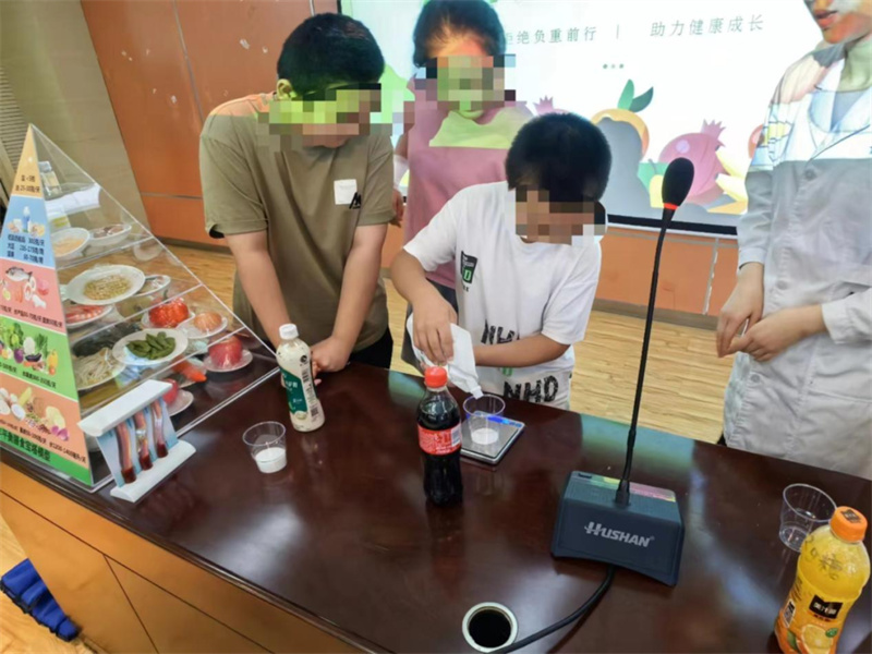 科普讲座在内分泌遗传代谢科薛颖主任的致辞中拉开帷幕。高怡青副主任医师以《科学防治肥胖,拒绝负重前行》为主题开展科普讲座,三十分钟的小课堂聚焦儿童生长发育“如何健康管理体重,合理膳食”。健康体重管理师现场互动,孩子们动手精准测量饮料的含糖克数、触摸认知脂肪和肌肉的区别、计算BMI了解自己的超重情况、选购健康食物搭配营养餐。现场气氛高涨,有效地帮助家长把握孩子生长发育的“黄金期”,为孩子们构建更健康,更科学的成长空间。
