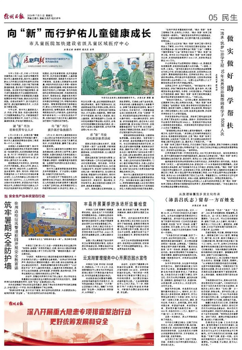 今年以来,徐州市儿童医院在人才、科技、护理、服务、管理、信息化建设等各个方面聚焦新质生产力,不断提高医疗技术和服务管理水平,为成千上万的儿童减轻病痛,护佑他们健康成长。