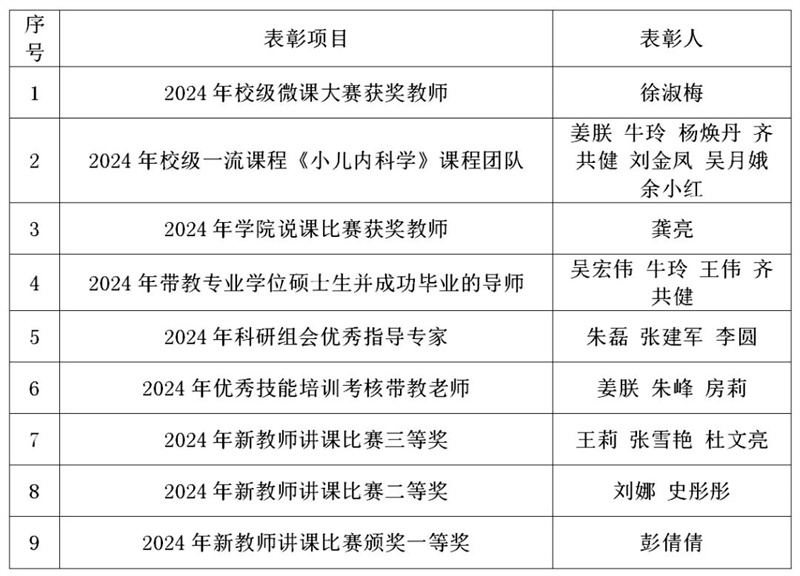 讲课比赛后进入教学工作会议环节,杨秋丽副院长就医院2023-2024学年教学工作取得的成绩给予了肯定,同时对今后的教育教学工作发展提出了希望和要求。随后,医院对徐医大微课大赛获奖教师、徐医大一流课程团队教师、徐医大第二临床医学院说课比赛获奖教师、医院“优秀技能培训带教老师”、医院“科研组会优秀指导专家”、医院“硕士生带教优秀导师”以及在讲课比赛中获奖教师共计25人次予以了表彰,获奖硕导代表吴宏伟主任、获奖教师代表李圆主任分别发言。