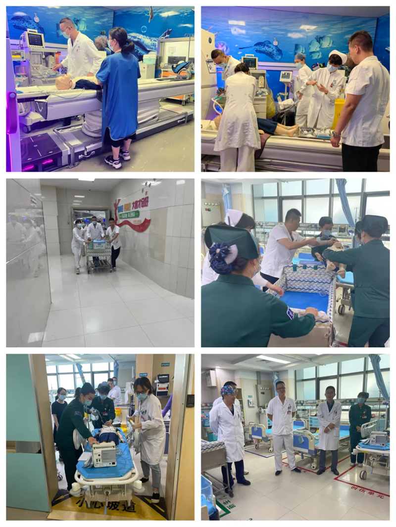 演练场景拟定在门诊一楼医学影像科,一名6岁患儿在行CT检查中突然出现血氧饱和度、心率持续下降,麻醉科、医学影像科、急诊科医护人员立即启动相关应急预案,对该患儿实施紧急抢救。