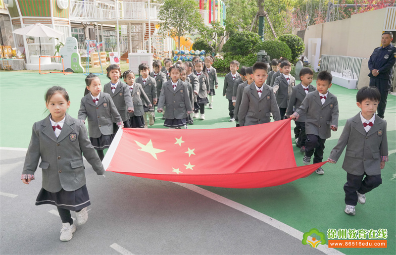 为培养幼儿的爱国情感和集体荣誉感,让幼儿了解国旗、国歌的基本知识和重要意义,增强幼儿的纪律性和尊重国旗的意识。10月28日,徐州幼专附属幼儿园玖玺园区举行了爱国主题教育升旗仪式。