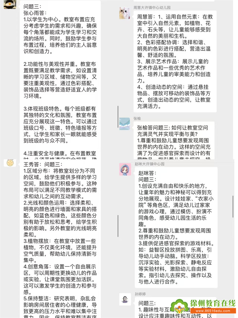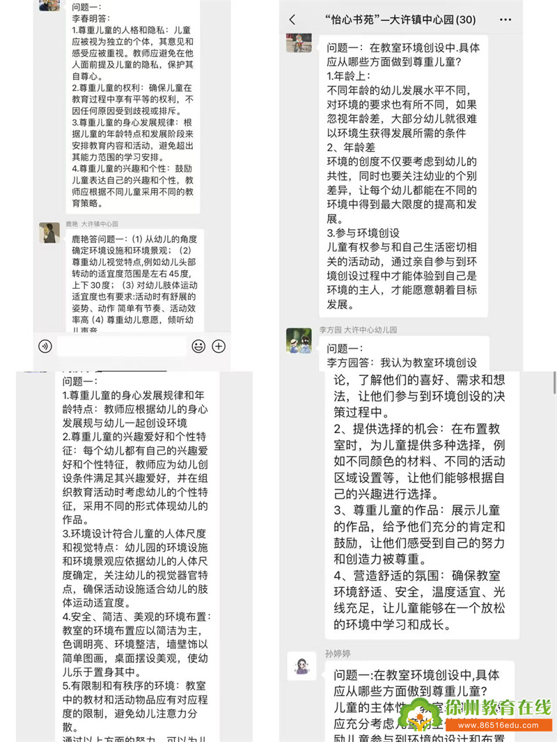 问题一:“问题一:在教室环境创设中,具体应从哪些方面做到尊重儿童?”