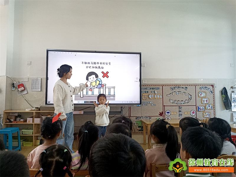 教师向小朋友们进行了交通规则讲解,通过生动的PPT和动画视频,教师向小朋友们详细讲解了红绿灯、斑马线、交通标志等基本的交通规则,并引导小朋友们讨论如何在实际生活中遵守这些规则。