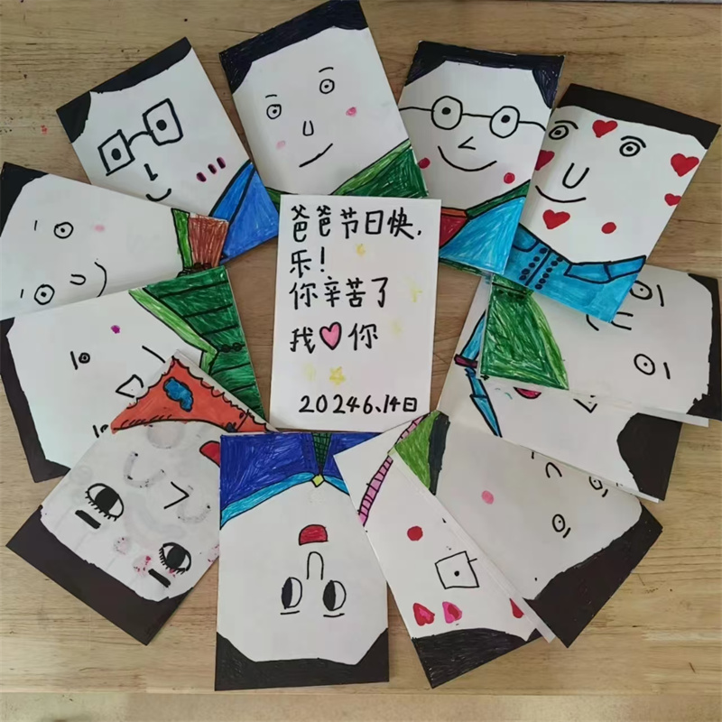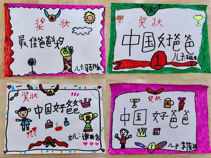 大班组宝贝们通过手绘给爸爸的奖状和送给爸爸的贺卡,来表达对父亲的感恩之情。