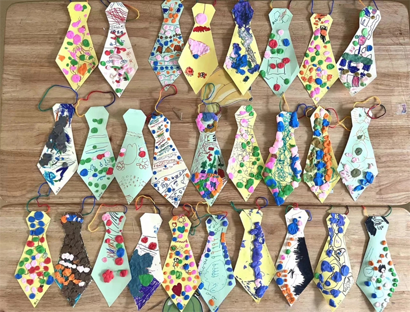 小班组宝贝们为爸爸准备了一份礼物——”爸爸的领带“,看看我们最后的成果吧。