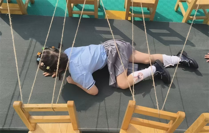 “飞夺泸定桥”:孩子们眼神中充满了好奇与坚定,仿佛置身于当年激烈的战斗场景中,小手紧紧抓住绳索,一步一步勇敢地向前迈进,努力克服心中的恐惧,展现出了非凡的勇气;“穿越火线”:孩子们在模拟的“火线”中穿梭,灵活地躲避着障碍匍匐前进,小小的身影充满了活力; “翻山越岭”:孩子们面对高低起伏的“山岭”,没有丝毫退缩,手脚并用,努力攀爬;“强渡乌江”:孩子们齐心协力,大家的共同努力下,成功地“强渡乌江”,脸上洋溢着胜利的喜悦。