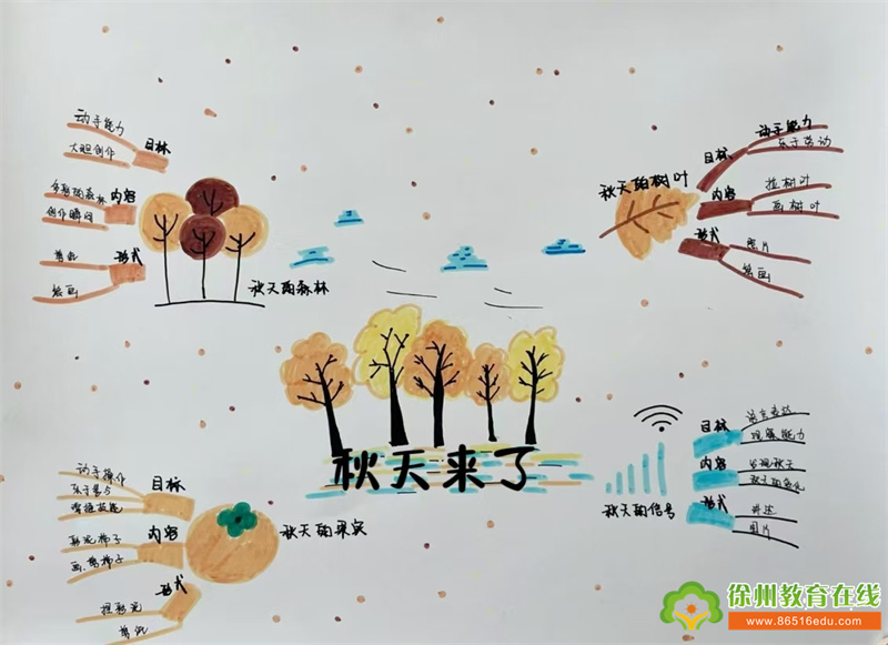 小班组:本次主题是“秋天来了”,进行该主题时结合幼儿园周围环境开展活动,尽可能多地让幼儿在真实的体验中认识秋天。受小班幼儿本身能力所限,小班教师商量从幼儿相对熟悉的幼儿园出发,引导他们在逐渐变凉的天气中寻找秋天的踪迹,发现秋天的多彩,感知到秋天来了,发现秋天到来之后对人们和动植物的影响。