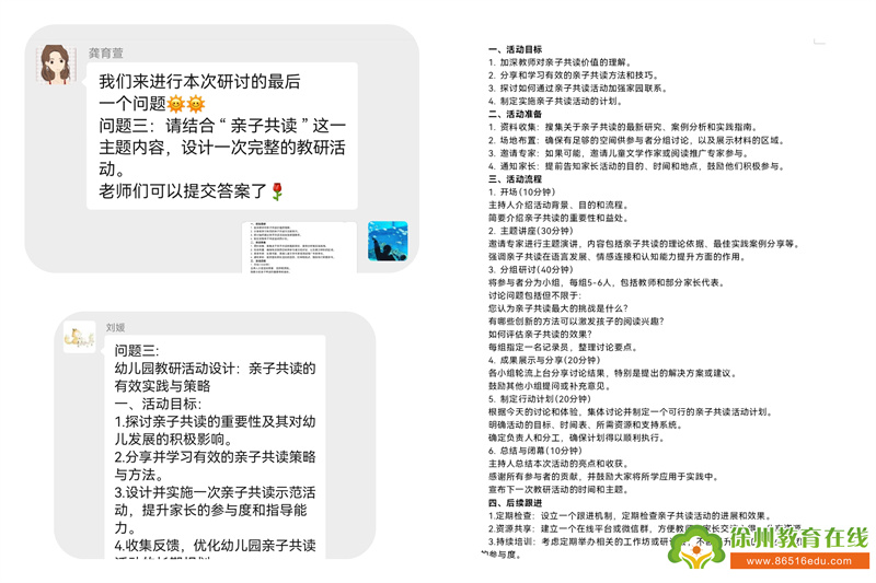 问题三:请结合“亲子共读”这一主题内容,设计一次完整的教研活动。