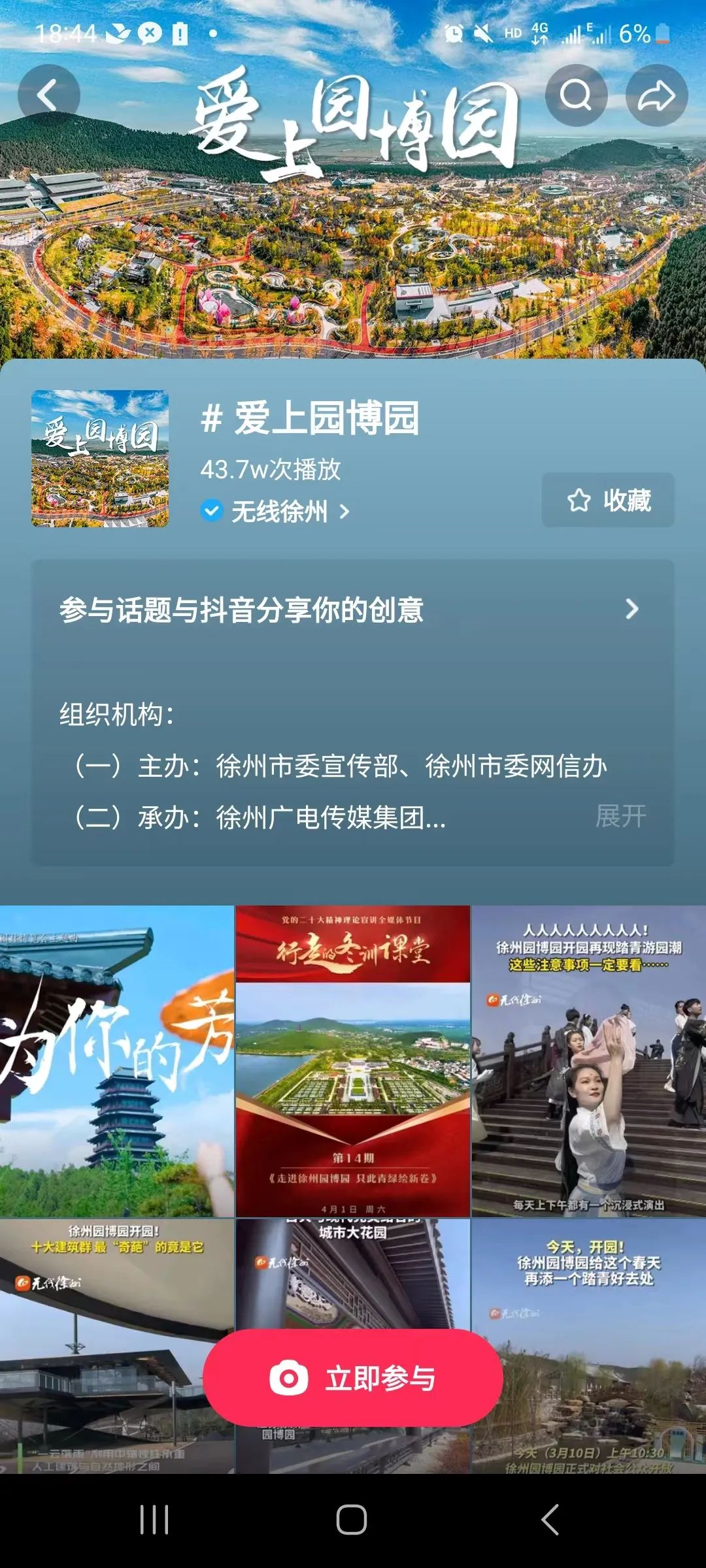 紧扣“爱上园博园”主题,运用抖音微视频手段,宣传推介徐州园博园,要求内容原创,积极向上。