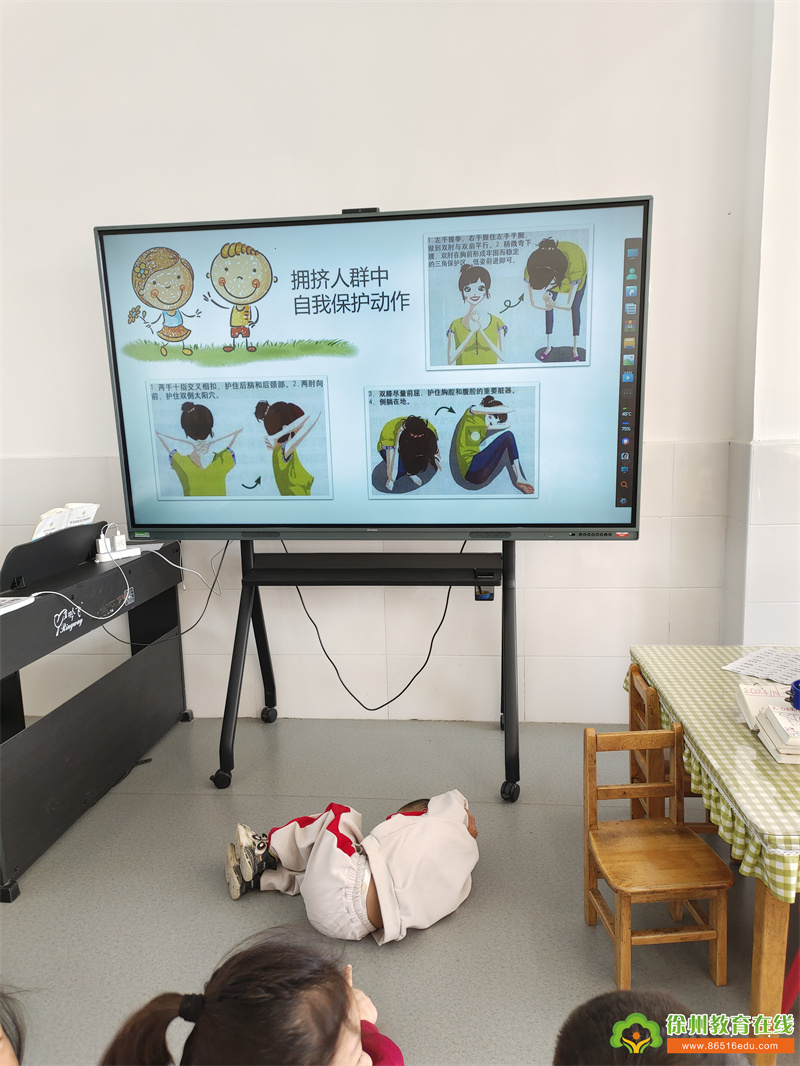 每个班级也开展了防踩踏安全主题班会。老师们利用绘本故事,向孩子们讲述了在人群中如何保护自己。例如,讲解在拥挤人群中要像小刺猬一样,双手握拳交叉在胸前,保护好自己的胸腔和头部。同时,鼓励孩子们分享自己在演练中的感受和学到的知识,进一步加深印象。