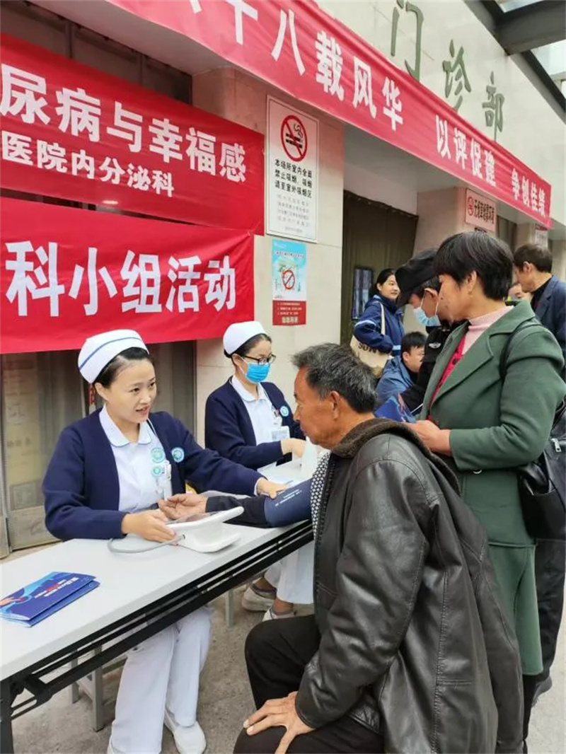 活动开始后,科室向前来咨询的患者发放糖尿病健康教育手册,登记就诊咨询信息。护理团队免费测量血压、血糖,为患者建立就诊档案。