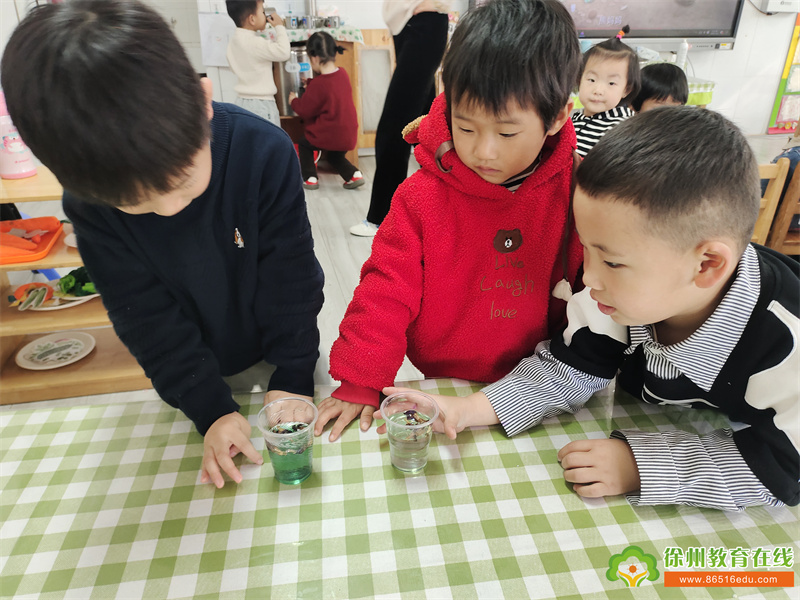 在实验过程中,孩子们需要仔细观察实验现象的变化。无论是哪杯水里的颜色的改变,他们都认真地看着,并且在观察后积极思考,这种观察力和思考能力的培养对他们的智力发展有着重要的作用。