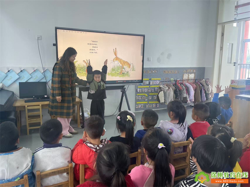 语言课更是热闹非凡。绘本故事《猜猜我有多爱你》,让孩子们沉浸在爱的氛围里。他们模仿着故事里的小兔子和大兔子,用稚嫩的声音表达着自己对爸爸妈妈、老师和小伙伴的爱,仿佛每一个字都带着温暖的力量。