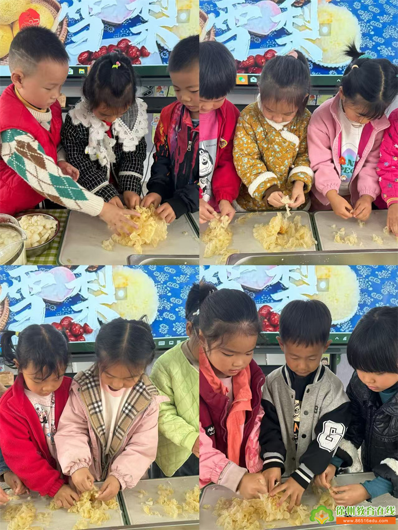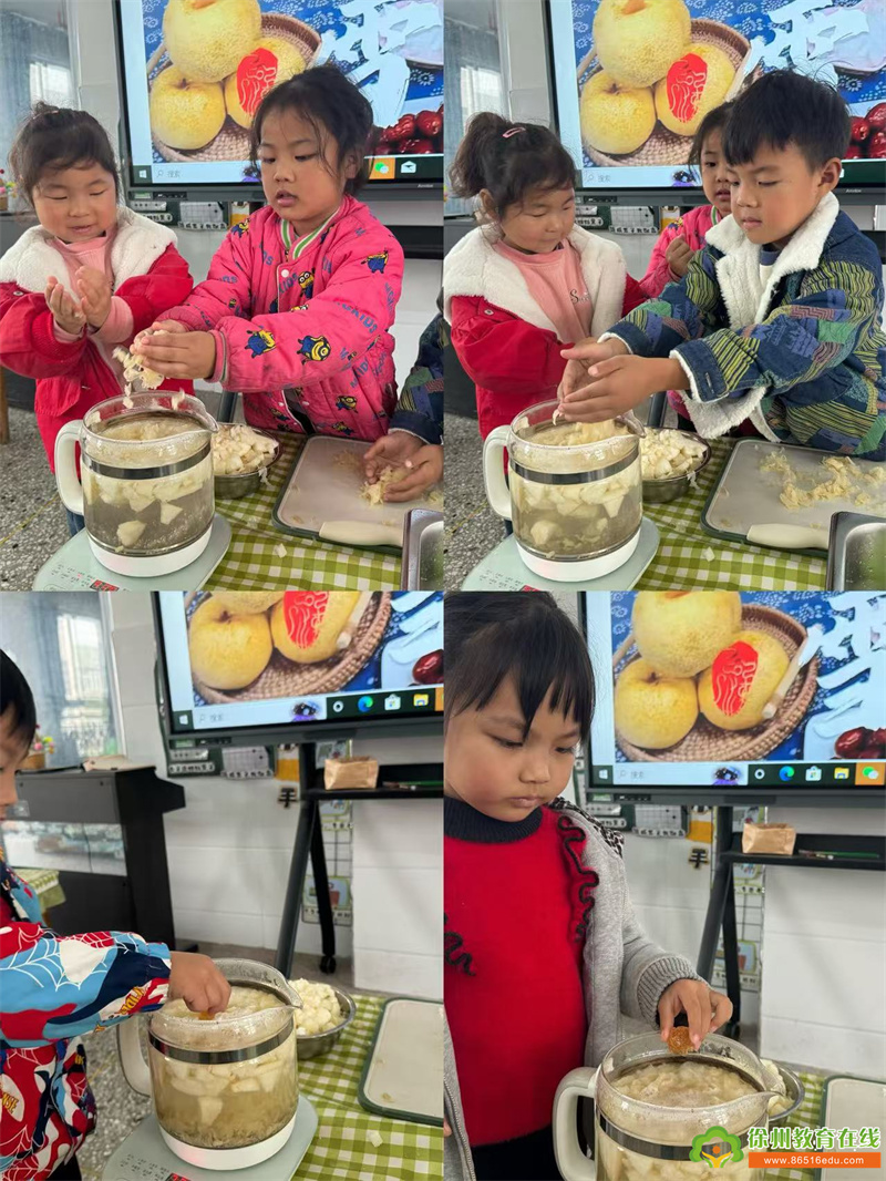 食育是传承优秀饮食文化、增进人类身心健康的“基础教育”。本次活动让孩子们认识了雪梨、红枣、枸杞、冰糖等食材的营养价值,在亲自体验、动手操作、学习分享中感受制作美食的趣味,享受食育活动的乐趣。以食为媒,让饮食文化植根于孩子心中,培养孩子健康、快乐的人格品质。