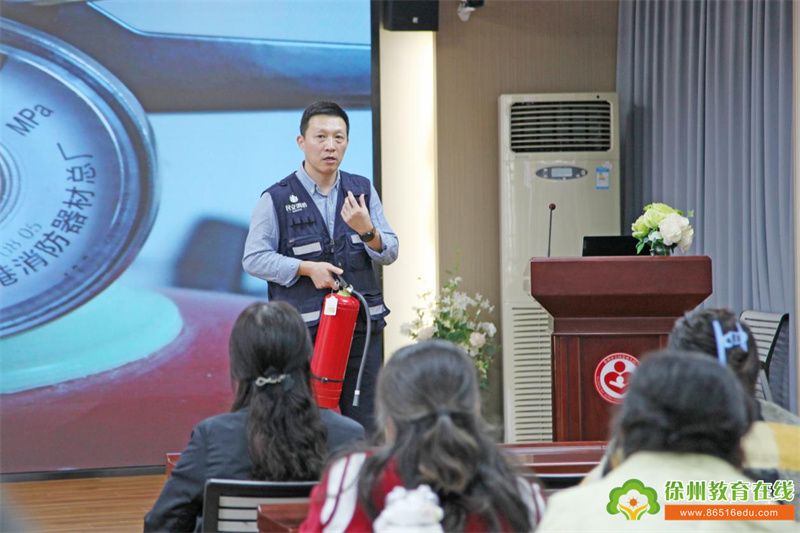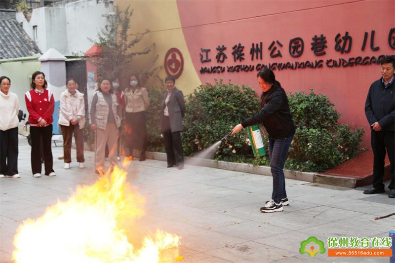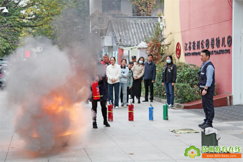 在幼儿园外,黄教官向老师们讲解了灭火器的正确使用方法和灭火技巧,教职工近距离体验学习了干粉、水基灭火器及灭火毯的使用方法,做到人人会用,遇火沉着冷静。