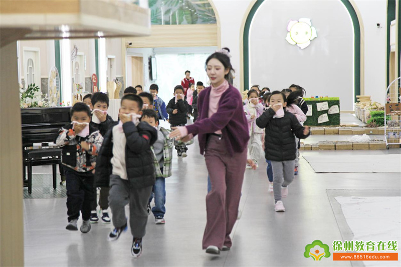 上午10:00钟,警报声划破宁静,演练拉开序幕,老师们迅速就位,指导小朋友们用湿毛巾捂住口鼻,弯腰前行。孩子们听从指挥,有序地从教室疏散到快哉亭公园东广场。整个过程紧张有序,仅用4分钟完成,过程中孩子们没有哭闹和慌乱,展现出良好的秩序。