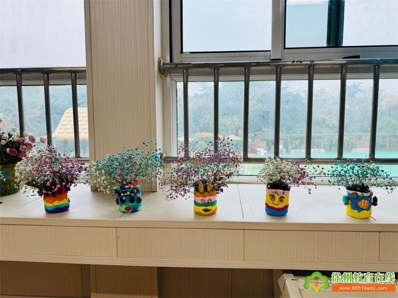 家长和孩子们利用纸筒、彩泥和自然材料进行创意搭配。首先,用橡皮泥粘在纸筒上面制作花瓶,有渐变色的,有纯色的,还有炫彩色的,大家的花瓶五彩斑斓。接着孩子们和家长一起用自然材料搭配出各种各样的创意图案,一个个生动漂亮的花瓶就制作完成啦!