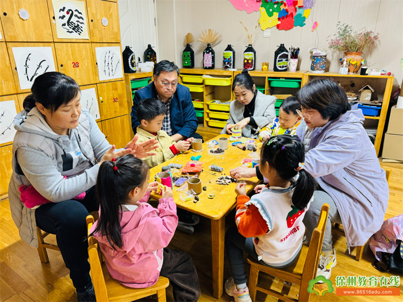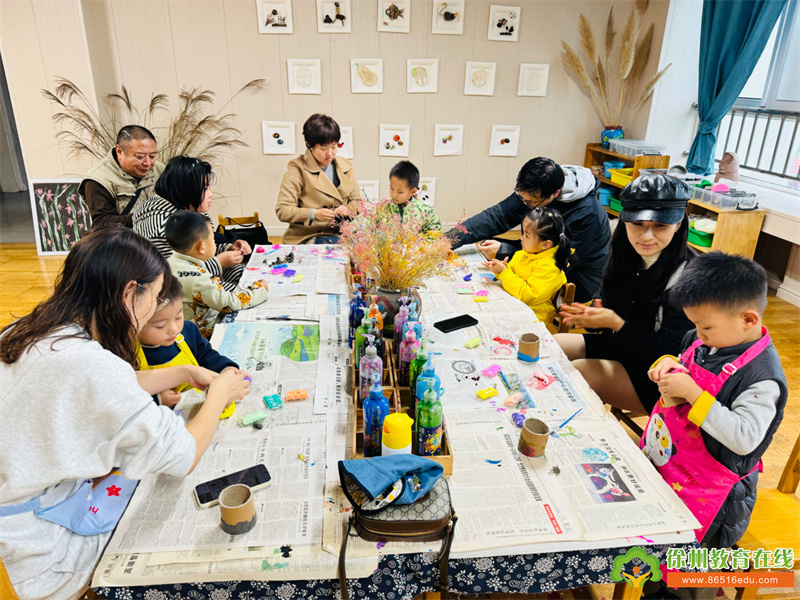 本次活动由二实幼资深美工创意教师耿军老师执教。首先,耿老师请家长朋友欣赏了孩子们的创意作品,并向大家介绍了自然创意手工“花瓶里的秋天”的制作方法。家长们初步熟悉制作步骤,主动领取材料,积极地投入了创作。