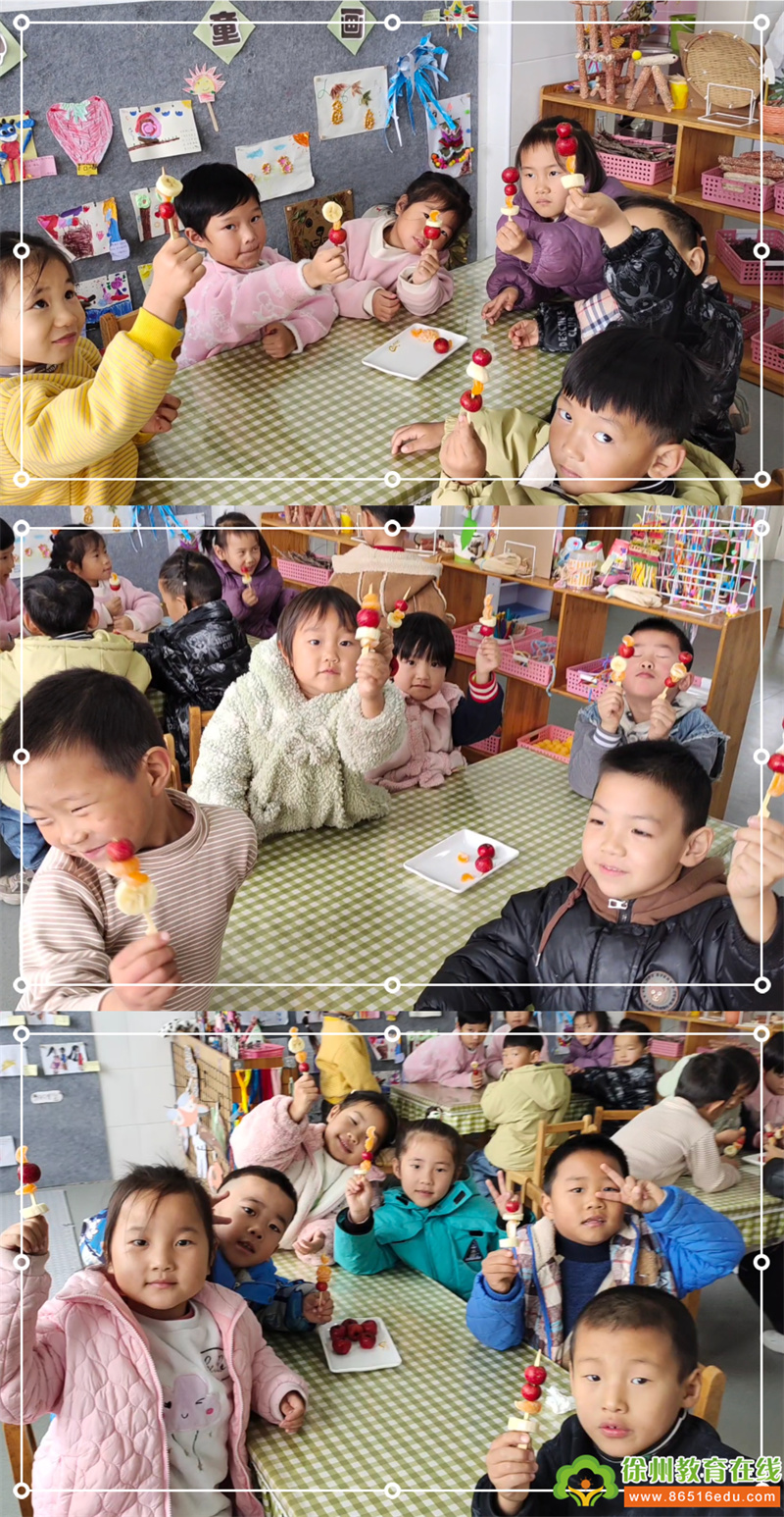 在这个充满乐趣的今天,我们的小厨师们清洗小手,准备大显身手。首先,他挑选了新鲜的水果,有红红的山楂,有甜甜的橘子,有香香的香蕉。