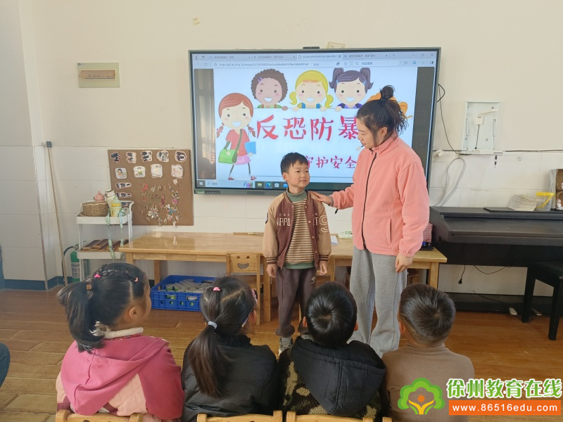 各班教师根据幼儿的年龄特点,运用故事、情景表演、视频动画等方式开展反恐防暴安全教育活动,使孩子们初步了解有关反恐防暴方面的知识,认识到暴力事件的潜在危险,学会保护自己,懂得遇到坏人时如何逃避,逃避过程中避免混乱奔跑,防止发生踩踏事件。