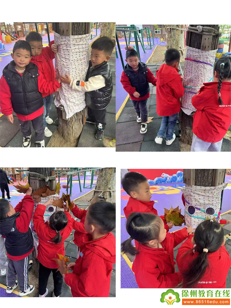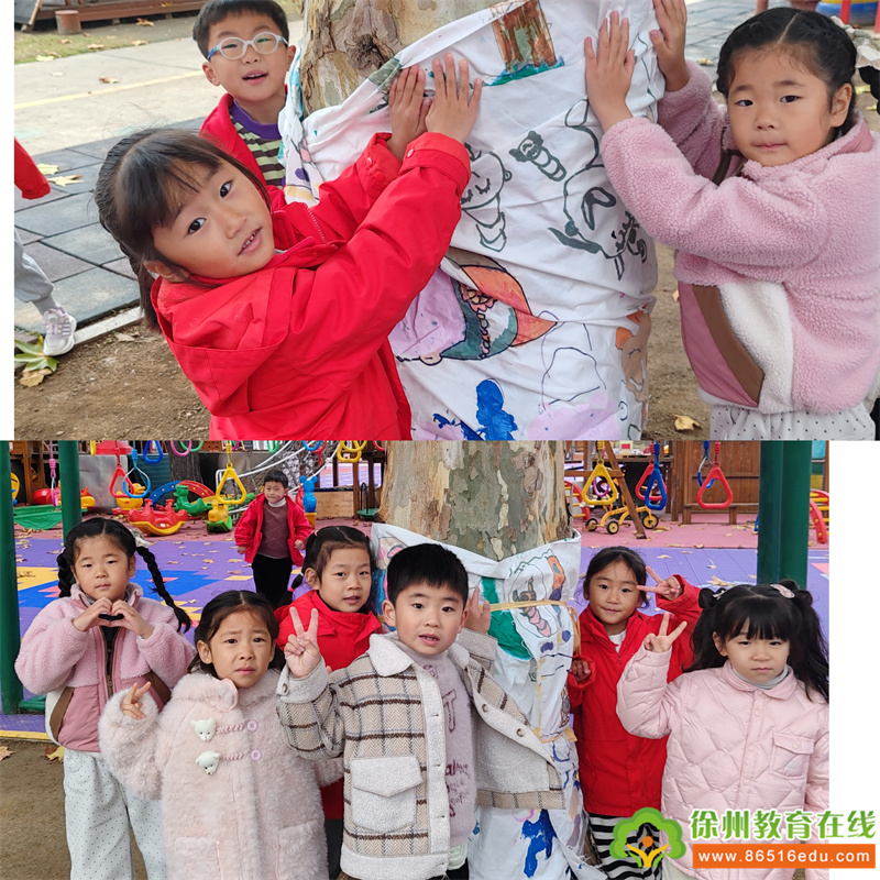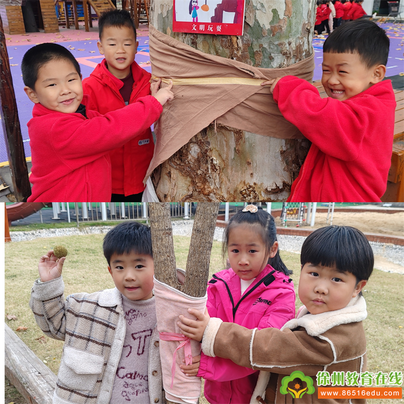 冬天我们有厚厚的外套,那外面的大树会不会冷呢?我们去给它们穿上保暖的衣服吧!