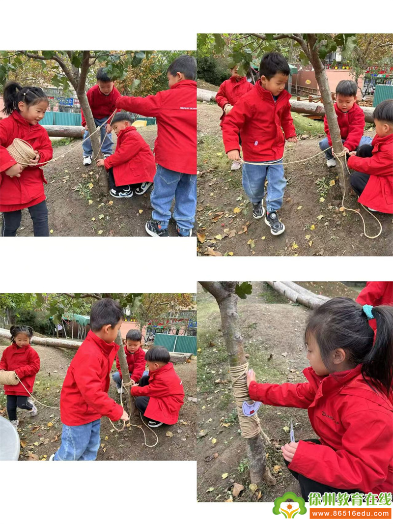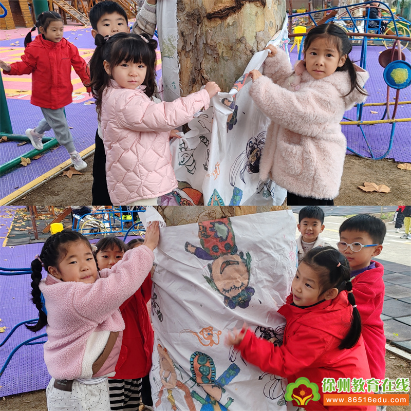 大树穿上了漂亮的衣服,孩子们纷纷抢着和大树比比高,“大树,明年春天我们再来比一比吧!”