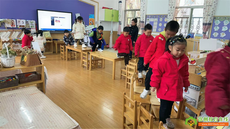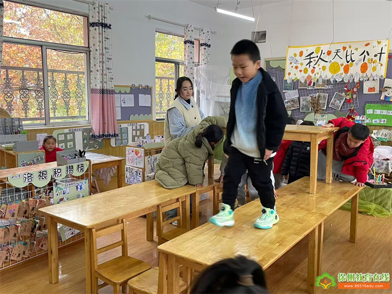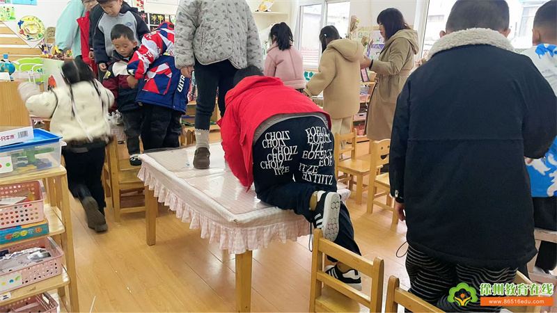 《3-6岁儿童学习发展指南》中指出:幼儿每天的户外活动时间一般不少于两小时,其中体育活动时间不少于1小时。确实,生命在于运动!对3—6岁的孩子来说,正是身体发育和机能发展极为迅速的时期,保证每天有适度有效的运动显得至关重要。但有时因为气候条件的影响,户外活动时间得不到有效的保证。根据这一现状,团结幼儿园积极利用教室内空间及桌椅,围绕阴雨天的室内体格锻炼进行深入地观察、设计、调整和研讨,使之成为户外体育游戏的有效补充,保证幼儿每天的外活动时间,让孩子们在阴雨天也能奔跑起来!