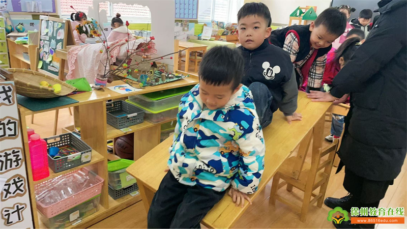 中班教师合理运用班级区域材料结合室内环境,创设充满趣味的游戏场景,最大程度地满足了孩子们的运动需求。