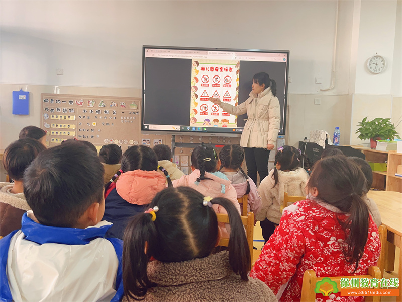 标志是生活中对人们行动的一种指示、是简单形象的图画语言,安全标志在生活中能对我们进行提示、警告。它们是幼儿常常见到但又不易引起注意的安全标志。为保证孩子的健康和安全,防止意外伤害的发生,2024年11月26日大许镇中心幼儿园开展了有关认识安全标志的教育活动。