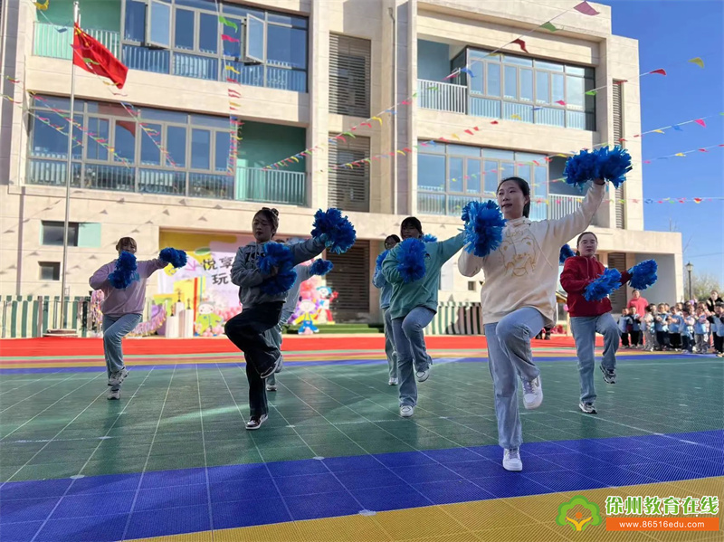 伴随着动感的音乐,老师们挥舞着手中的花球闪亮登场。每一个舞蹈动作都在为小朋友即将开始的比赛加油鼓劲!