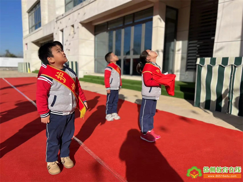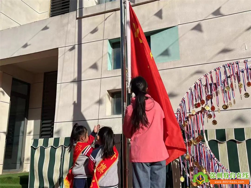 在庄严的国旗下,在嘹亮的国歌声中,鲜艳的五星红旗冉冉升起,全体师幼及家长们一同面向国旗,庄严地行注目礼。