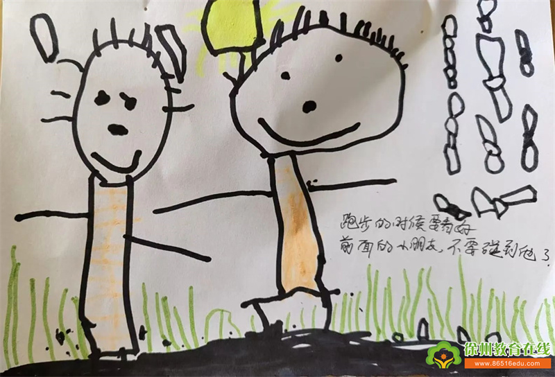 在运动会开展前期,老师带领孩子们一起了解运动知识,发扬运动精神,孩子们也将自己对运动会的想法一一画了下来。