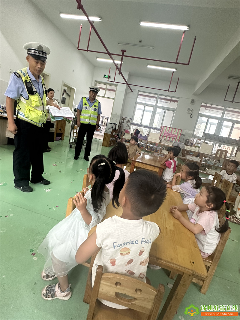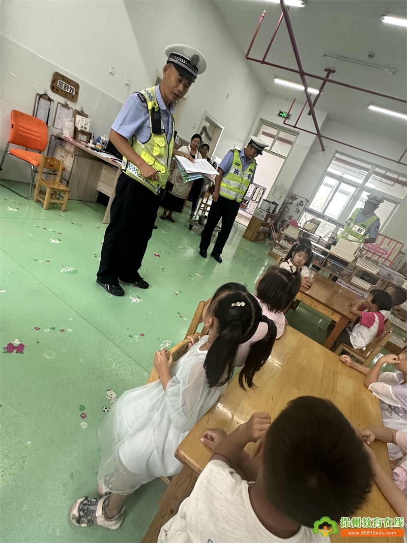 来自大彭镇公安局的交通警察宣传员,来我园向幼儿发放交通安全知识宣传单,并进行交通安全知识宣讲,呼吁大家大手拉小手,安全大家有,交通安全从我做起,做一个城市“交通文明人”。