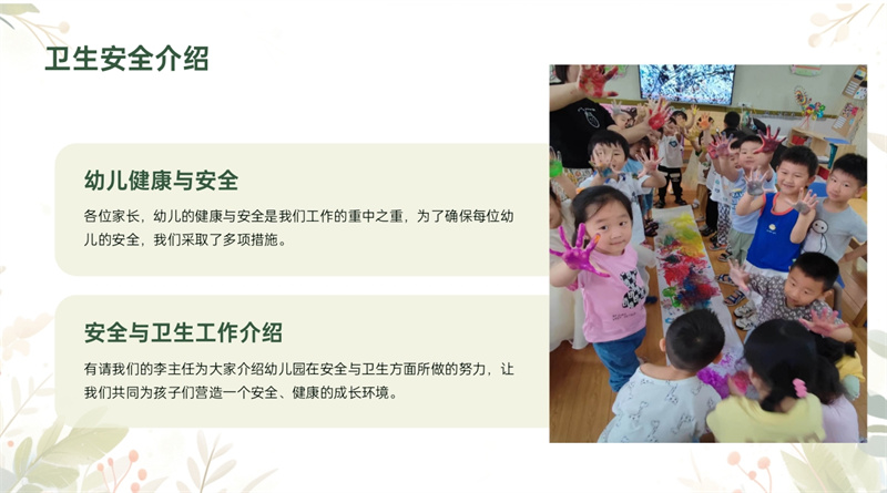 卫生与安全是家长们最为关心的话题之一。分管安全工作的李主任为大家详细介绍了幼儿园在安全与卫生方面所做的努力。从食品安全到校园安保,从日常消毒到应急演练,幼儿园始终将孩子们的健康与安全放在首位。李主任的详细介绍让家长们倍感安心,他们纷纷表示,将全力支持幼儿园的安全工作,共同为孩子们营造一个安全、健康的成长环境。