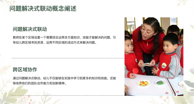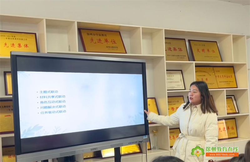 研讨完毕后,孟主任肯定了老师们提出的策略,并且提供了以下四点联动思路:材料共享式联动、角色互动式联动、问题解决式联动、任务驱动式联动。