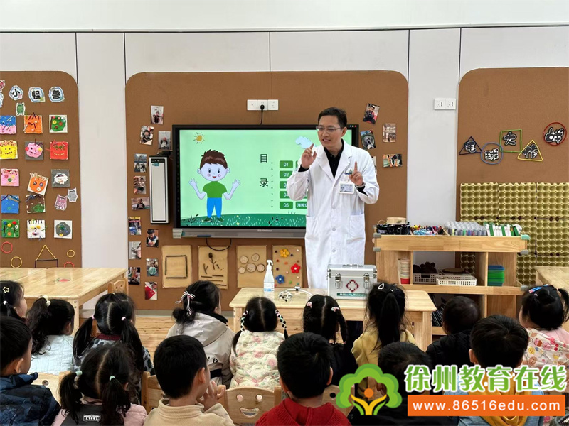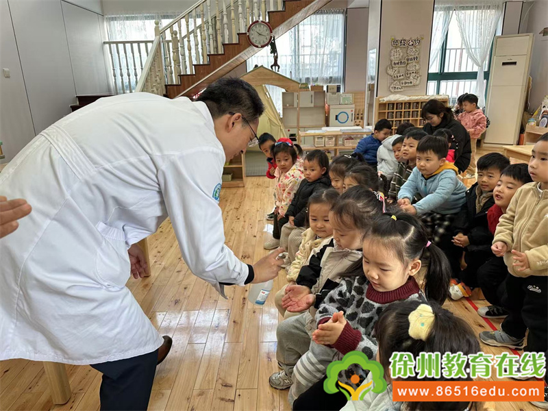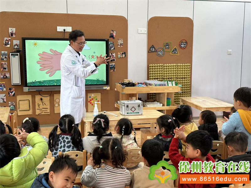 第二位走进课堂的家长是红石榴班张曌清的爸爸,他作为中医院的专业医生,向我们讲述了医生的职业特点,并带孩子们认识了中医的治疗工具。最后重点讲解了七步洗手法张医生亲自示范,动作娴熟而标准,孩子们也都跃跃欲试,高高举起小手,跟着一步一步认真学习。有的小朋友一边洗一边念着口诀,还有的互相检查步骤是否正确,一时间,教室里充满了欢声笑语,孩子们在欢乐的互动中牢牢掌握了这一健康小秘诀。