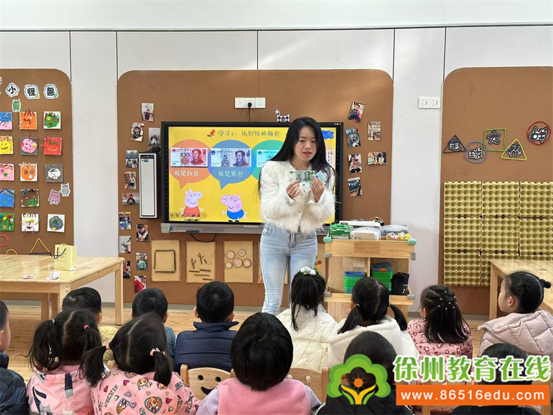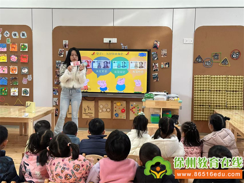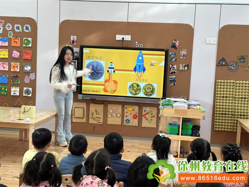 第三位进课堂的家长是陈晞泽妈妈,她给小朋友们精心筹备了一场别开生面的银行体验。首先,她带着小朋友们认识了钱币形状、颜色和钱币面值大小,一角、五角、一元……孩子们通过直观的对比,哈子们对钱币有了初步的认识。陈晞泽妈妈引导小朋友们了解钱币的作用,钱可以买到甜甜的糖果、好玩的玩具、漂亮的衣服……孩子们热烈地讨论着,明白了钱在生活中的重要用途。小朋友们还知道了爸爸妈妈的钱是通过辛勤的工作换来的,每一份收获都饱含着努力与汗水,让小朋友懂得珍惜与感恩。陈晞泽妈妈还分享了一个温馨的故事,让钱币和爱有了升华,让孩子们在感受爱的同时,思考快乐和幸福的真谛,明白财富不仅仅是金钱,还有满满的情感。