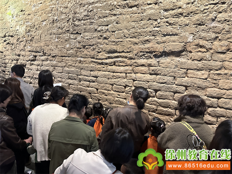 接着,我们一起来到了地下一层。李祉默妈妈告诉我们:徐州城市开发建设过程中从地下发掘出了明代古城墙,为了保护历史文物,城墙博物馆依古城墙而建,在地下一层,有步梯、电梯,展示的是明代徐州古城的一段城墙,这段城墙保存完整,青砖堆砌整齐,局部长满青苔。城墙是中国古代城市形成的标志,彭城干载风雨、龙争虎斗、战火硝烟、水倾洪浸,城墙凝结着人民的智慧和气魄,城市承载着历史的风风雨雨,历史是前行与奋进的基石,我们坚实的脚步仍然安踏在历史厚重的城垣之上,回望古城墙的一砖一石,感慨万千。