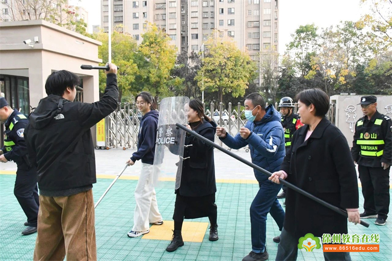 为了有效防范校园内发生暴力袭击事件,加强教职员工面对突发恐怖事件的防范意识,提高教职工面对恐怖事件的合理处理、自护自救及保护幼儿有效逃生避险的能力,最大限度地减少因突发恐怖事件对师生造成的人员伤害,确保我园教职工和幼儿的人身安全,我园联合泉山区泉山公安分局 开展了“防暴反恐”安全应急专项培训活动。