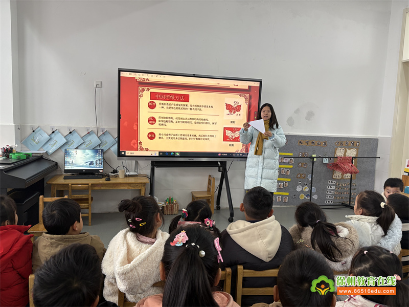 活动伊始,老师们通过生动的图片和视频展示,向孩子们介绍了剪纸艺术的起源、发展以及基本的剪纸技巧。孩子们被那些精美绝伦的剪纸作品深深吸引,眼中闪烁着好奇与期待的光芒,对即将开始的剪纸体验充满了热情。