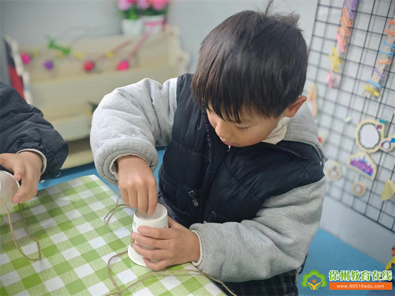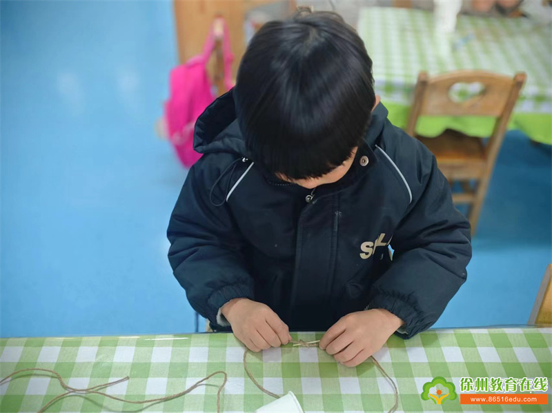 在老师的示范下,小朋友们迫不及待地动手操作起来。他们小心翼翼地在纸杯底部扎孔,将细线穿过去,再系上牙签,防止细线脱落。尽管小手还不够灵巧,但每个孩子都专注认真,遇到困难时积极向老师和小伙伴求助。不一会儿,一个个简易的纸杯电话就制作完成了。
