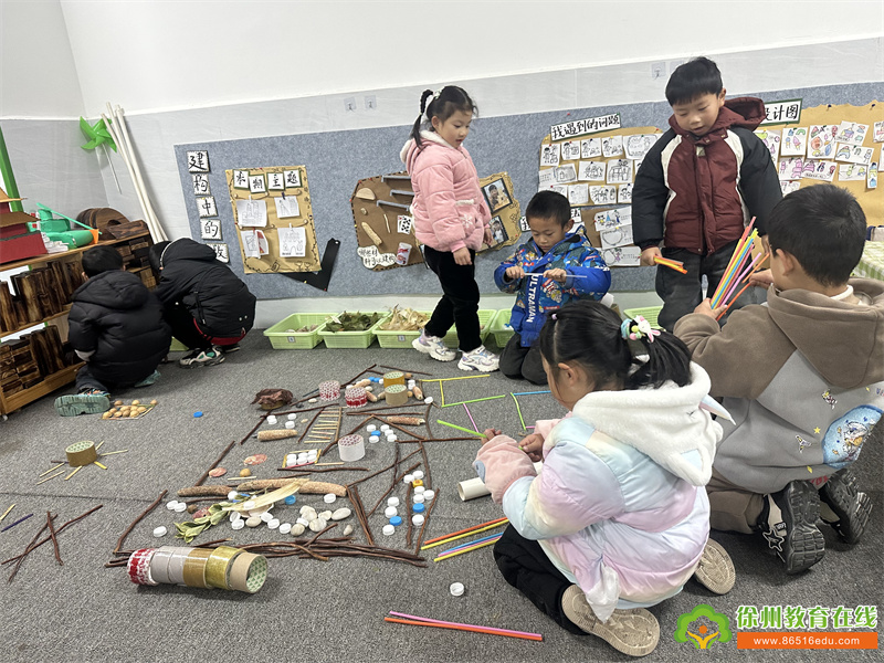 近日,单集镇中心幼儿园中班的教室里热闹非凡,一场低结构材料的拼搭活动正在火热进行。玉米棒、石头、树枝、冰棍棒、PVC管等平常物件,在孩子们手中“摇身一变”,成了创意十足的拼搭素材。