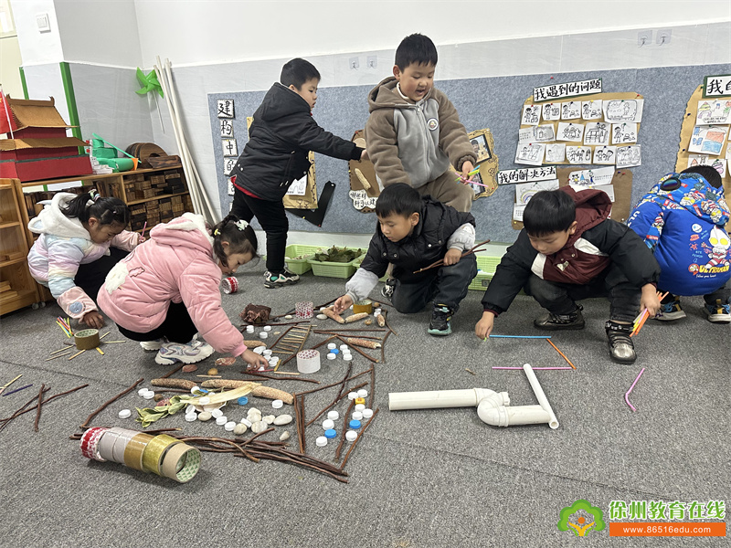 其间也不乏小挑战,搭建的“高塔”摇摇欲坠,精心铺就的“小路”突然散掉,但孩子们毫无气馁之色,迅速重新规划、加固。老师们适时给予启发,引导他们巧用材料特性。