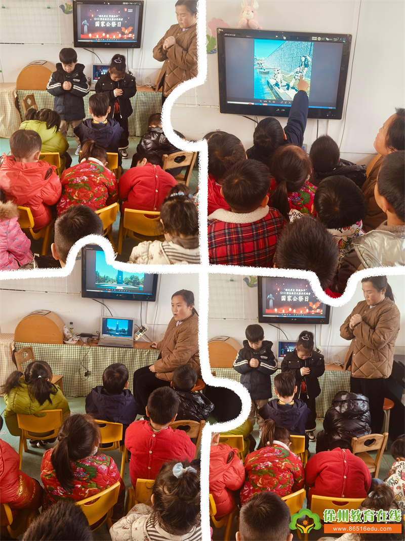 各班教师通过播放历史影像资料、讲绘本等方式,向幼儿介绍“南京大屠杀”的历史故事,让幼儿了解“南京大屠杀死难者国家公祭日”的来历,并在此基础上对幼儿进行革命精神和爱国主义教育,教育幼儿要谨记历史,勿忘国耻,爱国爱家。