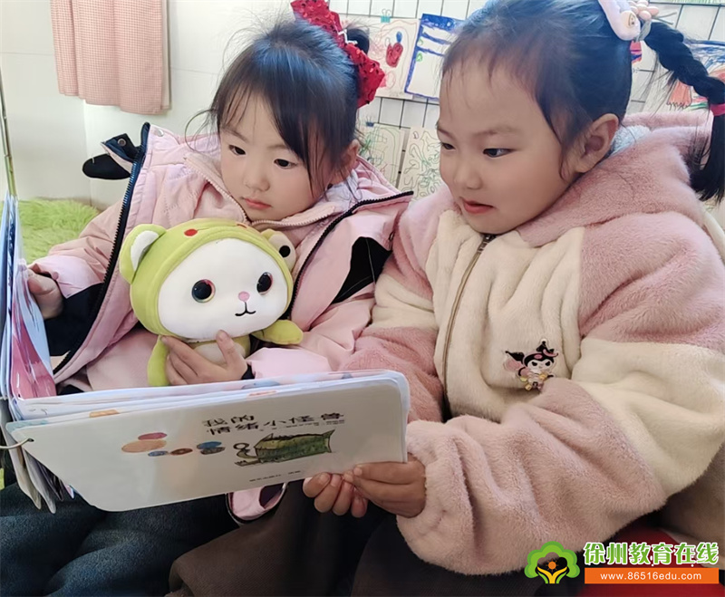 阅读时光到了,孩子们正围成一团,当老师凑近一看发现,他们正在看班级投放的绘本《我的情緒小径兽》。绘本充满童趣的小怪兽形象和绚烂的色彩,吸引了孩子们的目光,什么是“情绪”呢?他们都想一探究竟,便开启了“情绪小怪兽”的探索之旅。