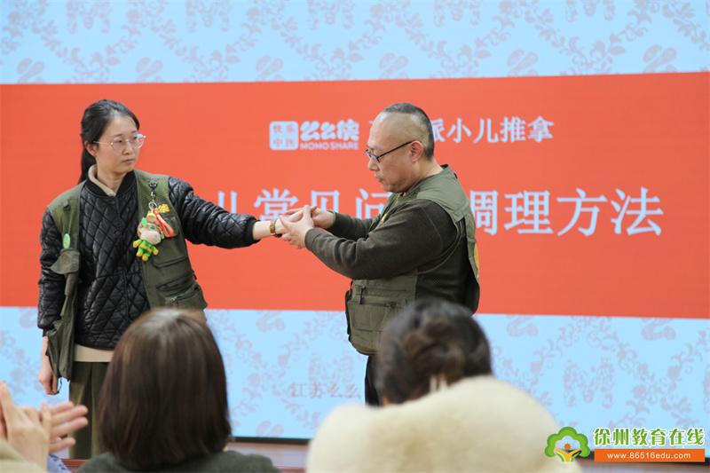 在讲座中,刘老师向家长们现场传授治疗小儿脾虚、肝火旺、发烧、咳嗽等相关病症的推拿手法,与家长们积极互动,答疑解惑,并推荐了多种中医养生调理的方法。