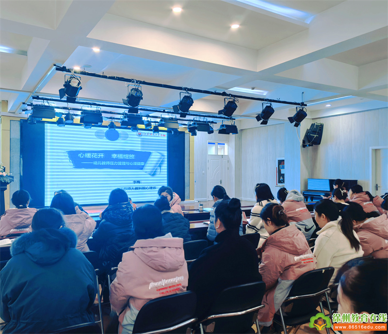 为帮助老师们更好地了解自己的心理状态,调适、排解压力和困扰,增强心理健康素质和情绪管理能力,同时激发职业幸福感和使命感,营造和谐愉快的教育环境,2024年12月13日,徐州市第二实验幼儿园特邀江苏师大教科院心理系李梅教授来园开展《幼儿教师压力管理与心理健康培训》专题讲座。