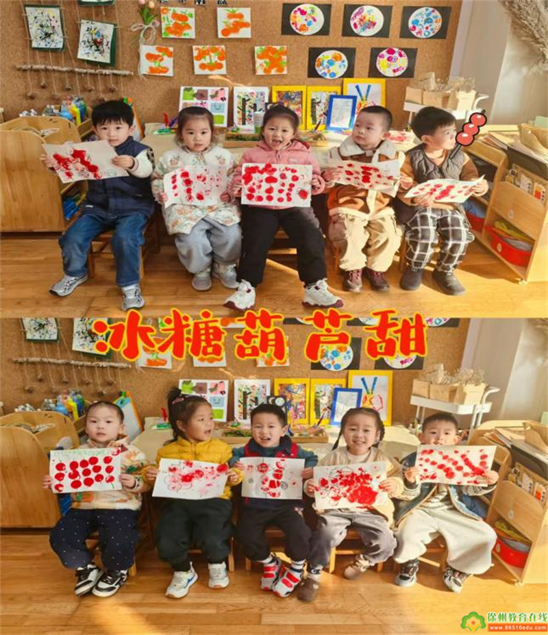 为了传承中华民族的传统习俗,培养孩子的动手能力,老师们精心设计了不同的活动,提供了丰富的材料供幼儿创作——孩子们用颜料绘画了甜甜的冰糖葫芦、用彩纸黏贴冬季雪花、用黏土制作小雪人等庆祝冬至的到来。