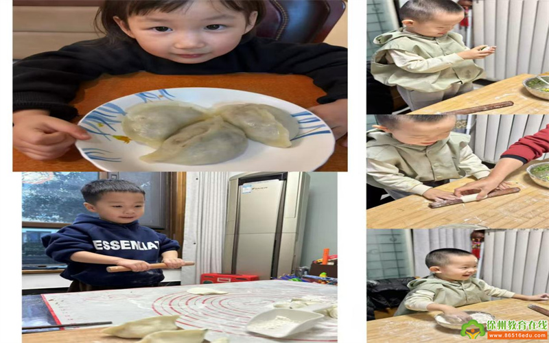 冬至时节,吃饺子和汤圆是传统习俗。孩子们在老师和家长的指导下,挽起袖子,和爸爸妈妈一起和面、擀皮、包饺子,忙得热火朝天。一双双灵巧的小手包出了一个个形态各异的饺子,煮好的饺子美味可口。