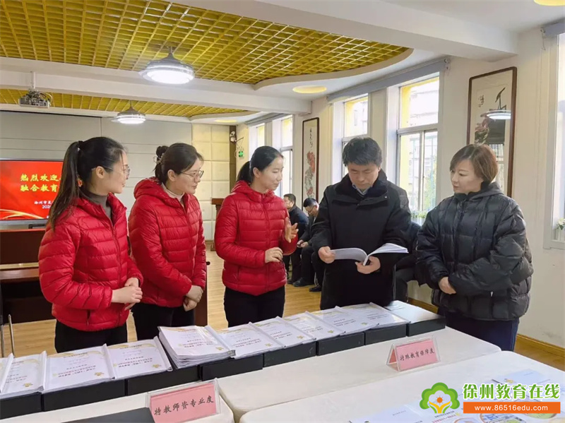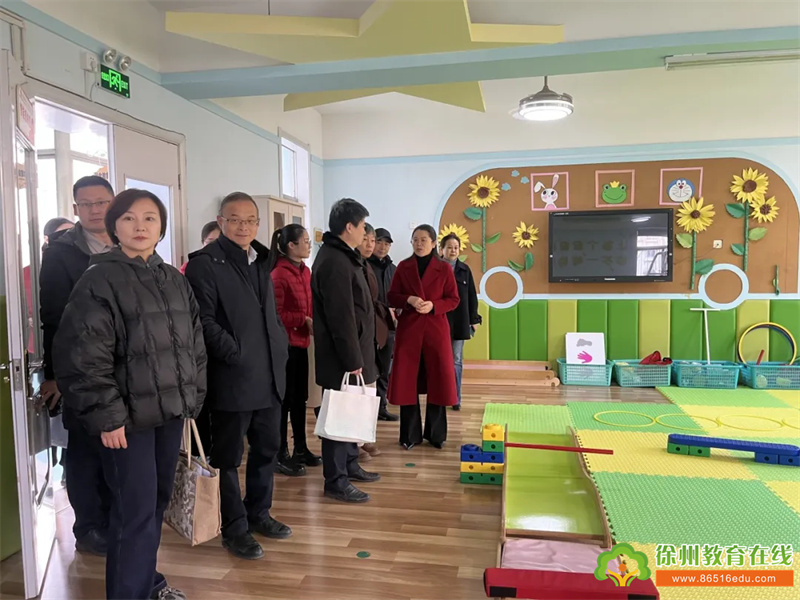 为贯彻落实《江苏省“十四五”特殊教育发展提升行动计划》,推进“十四五”期间特殊教育内涵建设与高质量发展,全面调研、指导2023年特殊教育发展工程建设、落实情况,12月23日,南京特殊教育师范学院教授王培峰、扬州市培智学校校长高鹏凌在徐州市特殊教育学校领导李之刚、王庆宝及泉山区教育局领导武颖、刘保新的陪同下莅临我园,通过听取讲解、实地走访、资料查阅、家长访谈等方式对我园融合项目开展情况进行了全面督导与指导。